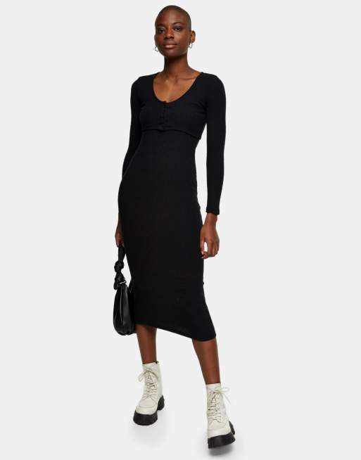 Topshop Ribbed Cardigan Midi Dress In Black Asos